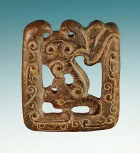 Nicely carved 1 7/8" Square-shaped Dragon Panel Cutout found in SE Asia. Ex. Clem Collins. |