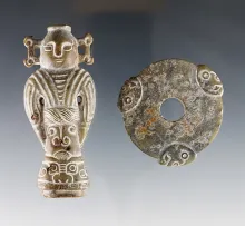 Pair of Southeastern Asia artifacts including a round perforated disc and a double Budda. |
