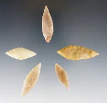 Set of 5 nice African Leaf-Shaped Neolithic Points. The largest is 1 3/4". |