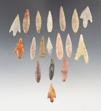 Set of 18 colorful African Neolithic Points. The largest is 1 5/8". |