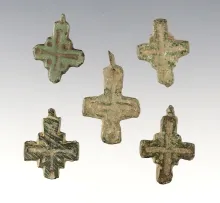 Set of 5 Byzantine Viking Medieval Cross Pendants. The largest is 1". 230.00