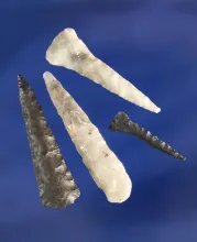set of four well-made Flint drills found in Oregon, largest is 1 1/2". |