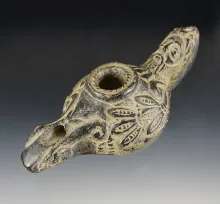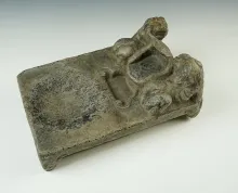 Very well styled perforated Precolumbian stone figural head carving recovered in Guatemala. |