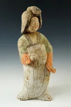 Large painted 14 1/2" Tang Dynasty female figure with original paint. Head glued back to body. |