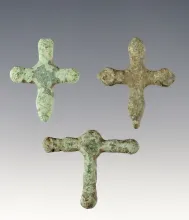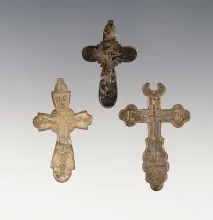 Set of 3 Medieval Byzantine Cross Pendants. The largest is 1 3/8". |