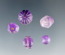 Set of five beautiful Roman drilled Amethyst Beads, largest is 7/16". 75.00