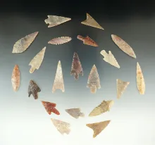 Set of 20 Colorful African Neolithic Points found in the Sahara Desert. The largest is 1 1/2". |