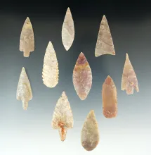 Set of 10 Colorful Points found in the Sahara Desert region, Africa. The largest is 1 7/8". |
