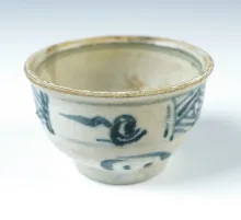 3 1/8" x 2 1/16" cup with interior and exterior decoration. From the Hoi Ann Shipwreck! |