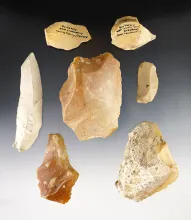 Rare, Set of 7 flint tools- Gortnessy, Northern Ireland. Ex. Sarge Smith. The largest is 3 13/16". |