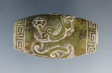 Exceptional artwork on this 2 1/6" Jade Bead/Pendant depicting two dragons, found in Burma. |