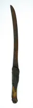 Very old 16 1/4" overall length metal blade with a decorated bone handle. Most likely African. |