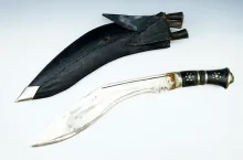 Vintage 16" Gurkah knife and sheath includes three smaller knives from India. |