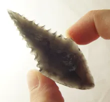Heavily patinated 3 15/16" bone harpoon tip found in Alaska. | ALASKA | 45.00 | |