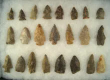 Set of 23 assorted Arrowheads and Knives, largest is 2 1/16". Found near Creelsboro, Kentucky. |