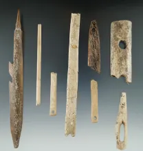 Group of assorted Alaskan bone artifacts recovered near the Bering Sea. Largest is a 6 1/8" harpoon. | ALASKA | 45.00 | |