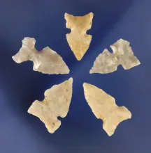 Set of six assorted arrowheads and Bird Points, largest is 1 3/16". All found in Eddy Co., NM. |