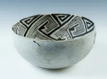 7" wide x 3 1/4" tall Anasazi Black and White Bowl with a couple pressure cracks, Arizona. |
