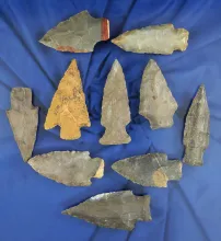 Set of 10 assorted Arrowheads found in Alabama and Tennessee, largest is 2 1/4". | TENNESSEE | 28.50 | |