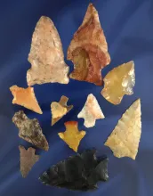 Group of 11 assorted Oregon and Washington arrowheads, largest is 2 1/8". |