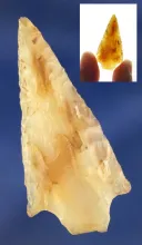 Nicely made and very thin 1 1/16" sidenotch Salado point found in Arizona. |
