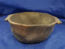 6" by 6 1/2" Red and Buff Bottle found in Mississippi County Arkansas at the Crosskno site. Pictured