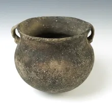 5 1/4" handled jar with piecrust rim- Big Eddy site, St. Francis County AR. 2 restored holes. | ARKANSAS | 140.00 | |