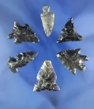 Set of six Obsidian arrowheads found in California, largest is 1". CALIFORNIA 35.00