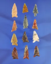 Nice group of 12 assorted arrowheads made from quality material in nice condition California. Larges |