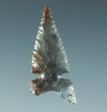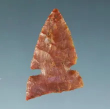 Exceptionally thin 15/16" arrowhead made from a flaked of pink chalcedony California. |