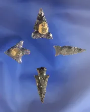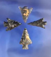 Set of four nice Obsidian Arrowheads, largest is 1" found by Terri Baldridge in the Tule Lake Basin,
