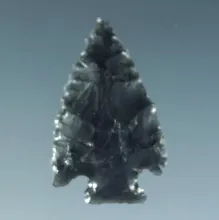 7/8" Stemmed point that is beautifully flaked from obsidian. California. CALIFORNIA