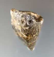 1 1/2" Pekisko point found in Saskatchewan Canada made from basalt. |