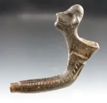 4" long Huron owl effigy pipe circa 1550-1700 A.D. found in Simcoe Co., Ontario Canada. |