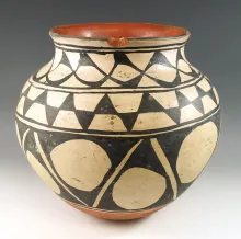 Large 9" tall x 9" wide nicely decorated Pottery Vessel from New Mexico. |