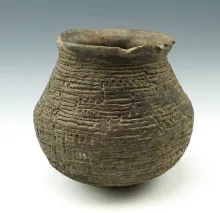 4 3/4" Tall by 5" Wide Corregated Pottery Vessel in excellent condition. Found in New Mexico. |