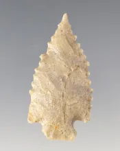 Finely serrated 1 5/8" Cornernotch Point found in Colorado. |