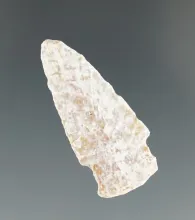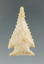 1 1/2" Serrated Tularosa made from tan chert, found in Colorado. Bennett COA. |