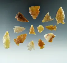 Group of 13 assorted arrowheads made from beautiful translucent material found in Colorado. |