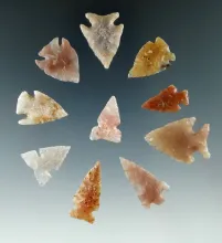 Group of 10 attractive arrowheads found in Colorado made from beautiful semi translucent materials. |