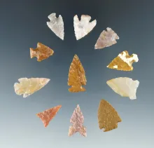 Set of 11 Colorado Arrowheads, largest is 15/16". Ex. Bob Roth Collection. COLORADO 150.00