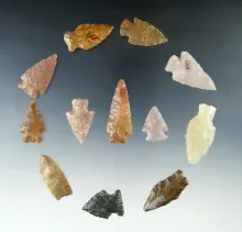 Set of 12 Colorado Arrowheads, largest is 1 3/16". Ex. Bob Roth Collection. COLORADO 170.00
