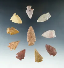 Set of 10 Colorado Arrowheads, largest is 1 3/4". Ex. Bob Roth Collection. COLORADO 85.00