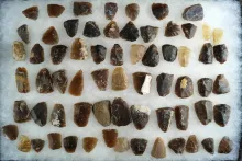 Large group of approximately 65 mostly Knife River Flint scrapers found in Emmons Co., ND. |