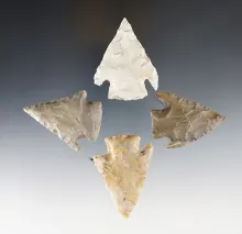 Set of four Cornernotch knives found in Texas, largest is 2" |