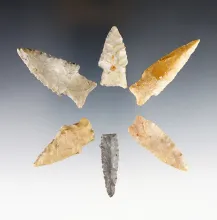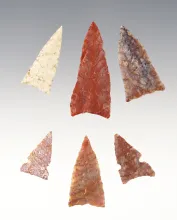 Set of 6 points from the Texas Panhandle made from Jasper and Alibates. Largest is 1 3/8". |