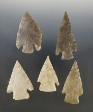 Set of 5 nice assorted Texas points. The largest is 3". Certificate of Museum Deaccession. |