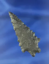 2 3/8" bifurcated base basalt dart with excellent serrations to blade edges. Found in Nevada. |