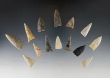 Set of 15 finely made Triangles found in the Kentucky/Tennessee area. The largest is 1 11/16". |