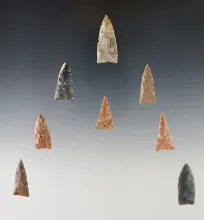 Set of 8 Triangles found in the Kentucky/Tennessee area. The largest is 1 7/16". |